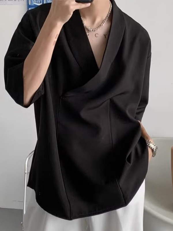 Men’s Solid Plunge Neck Short Sleeve Tee
