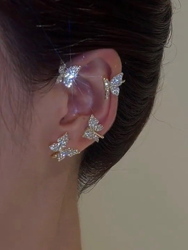Faux Pearl Tassel Rhinestone Butterfly Earring