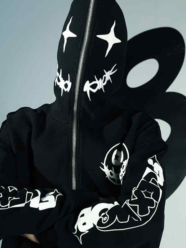 Men’s Funny Print Zip Up Oversized Hoodie