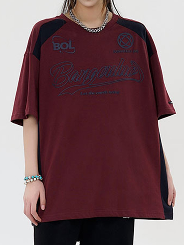 Retro Contrast Letters Oversized Short Sleeve Tee