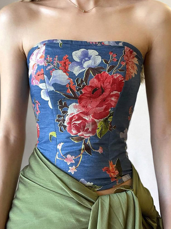 Vintage Floral Print Stretch Bandeau Top