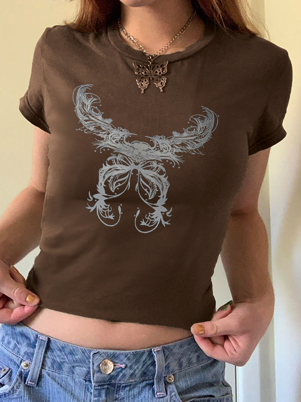 Vintage Brown Letter Print Short Sleeve Tee