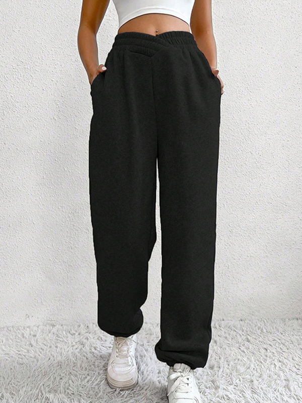 Solid Crossover Waist Bound Feet Sweatpants