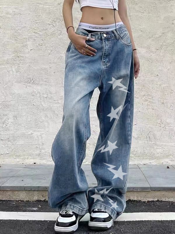 Washed Star Print Boyfriend Jeans