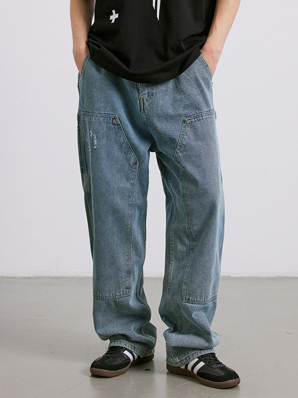American Retro Multi-Pocket Workwear Loose Jeans