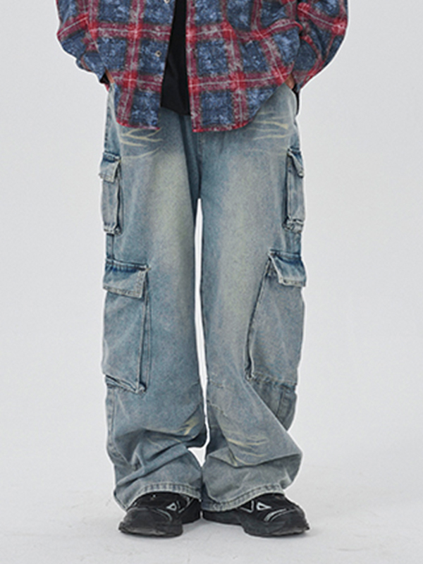 Men’s Washed Multi Pocket Cargo Jeans