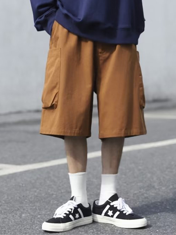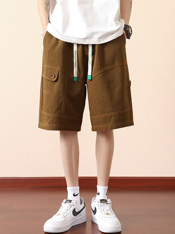 Vintage Washed Lightning Bolt Pattern Denim Shorts