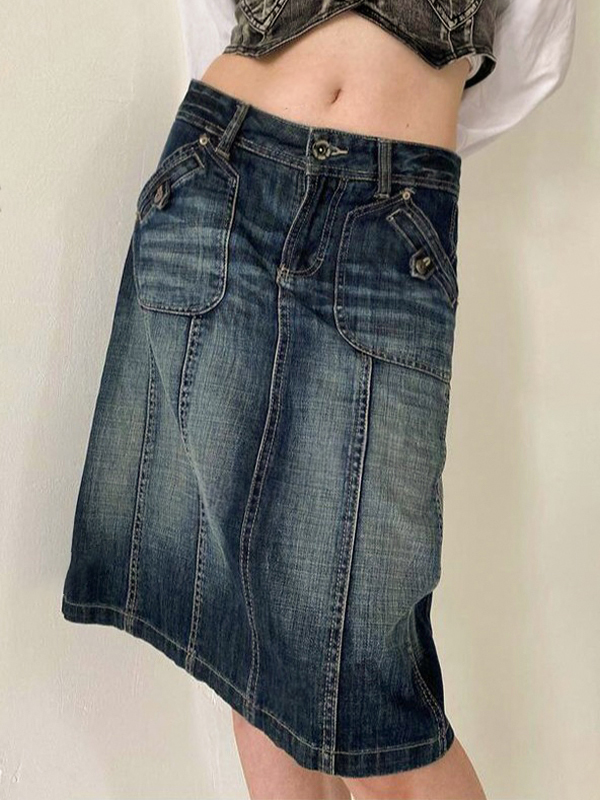Low-Waist Solid Color Versatile A-Line Mini Skirt