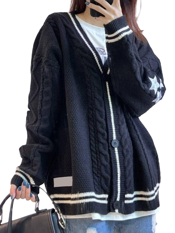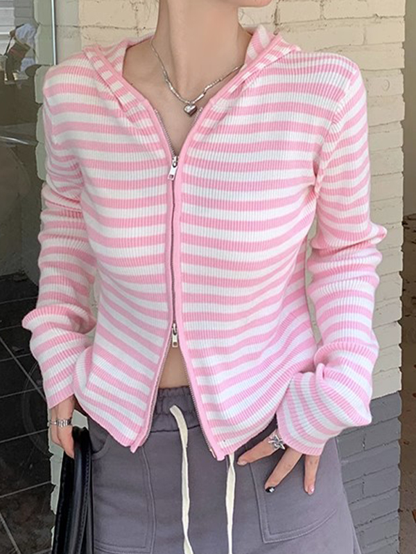 Contrast Color Striped Hooded Double Zip Knit Cardigan