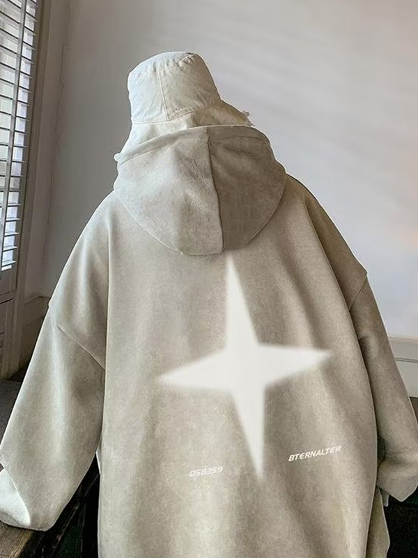 Men’s Foam Letters Flame Print Oversized Hoodie
