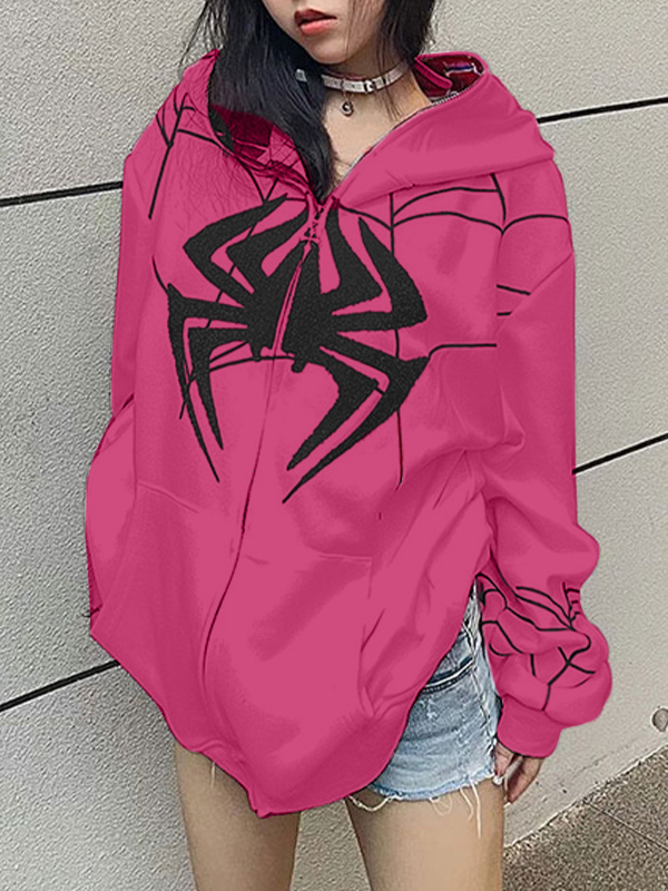 Street Spider Print Full Zip Oversized Hoodie