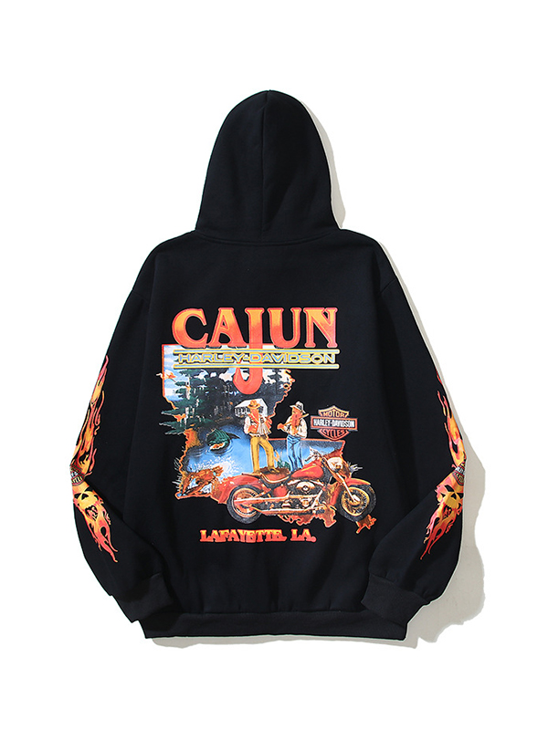 Men’s Street Plus Velvet Print Oversized Long Sleeve Hoodie