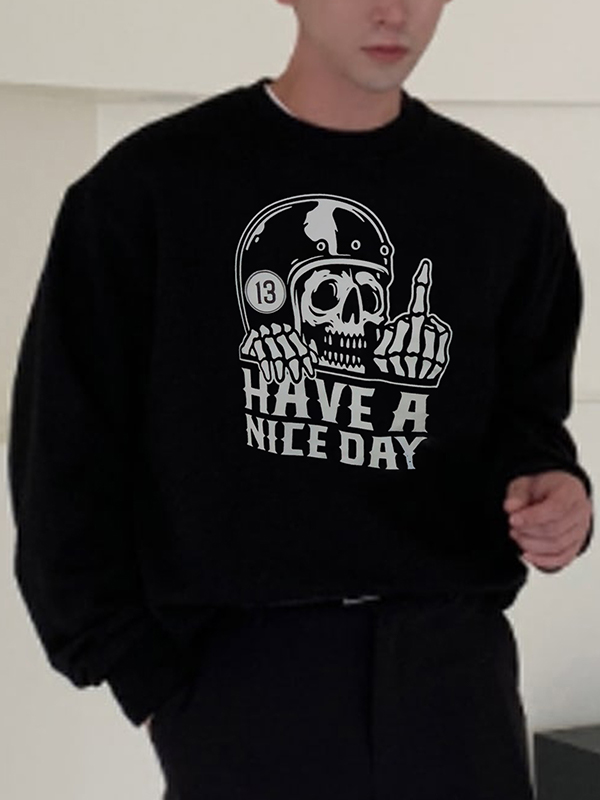 Men’s Funny Skull Letter Print Pullover Sweatshirt