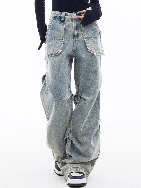 Vintage Washed Lightning Bolt Pattern Denim Shorts