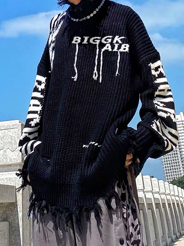 Men’s Letter Jacquard Tassel Design High Neck Sweater