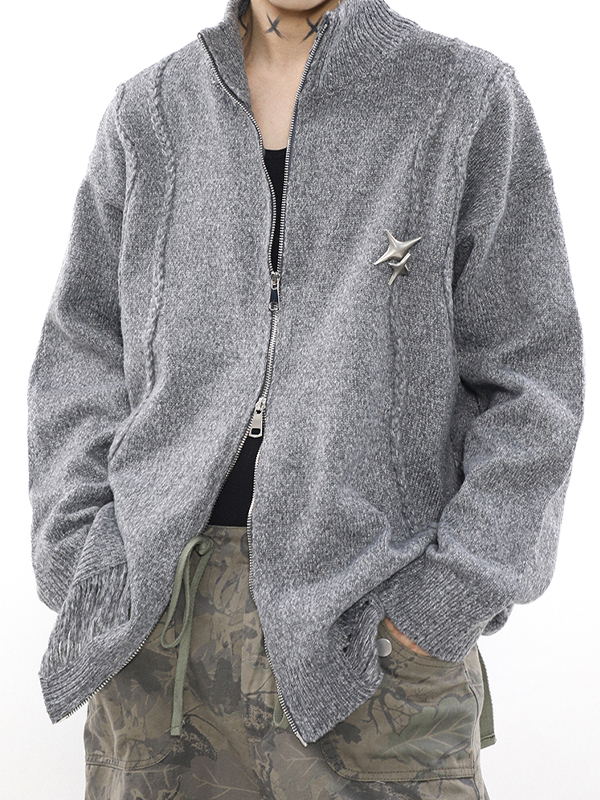 Men’s Solid Ripped Metal Decor Cardigan Sweater