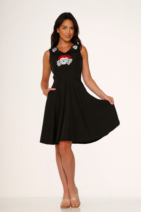 Rose Skulls Broderet Swingkjole