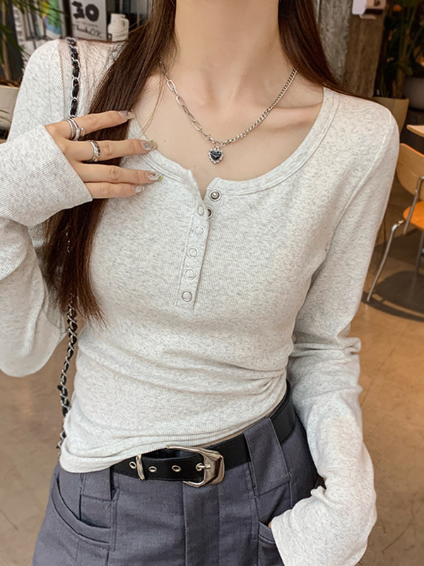 Solid color Long sleeves Tee