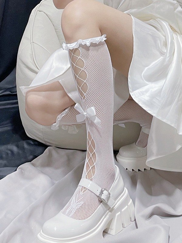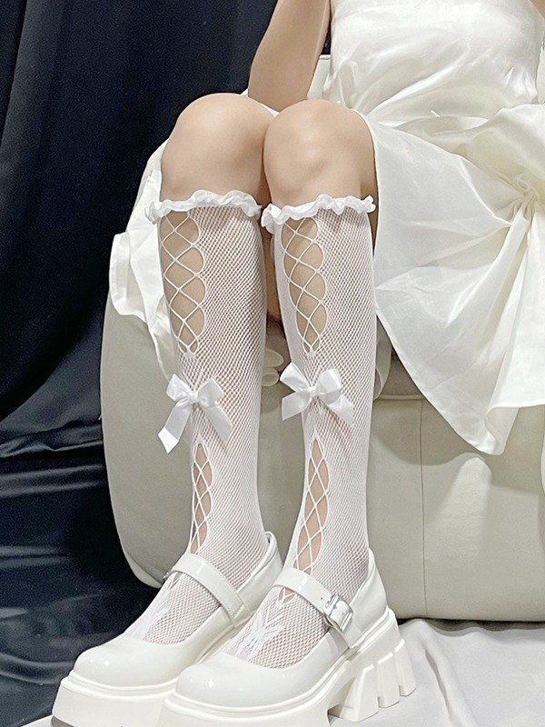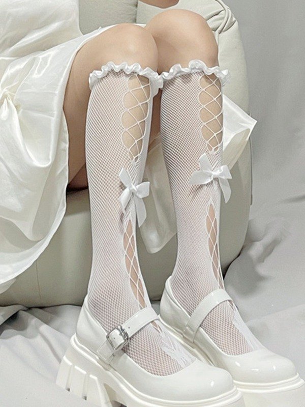 Details: Frill Cuffs Design, With Bow Decors At Front, Knee-Length Detail