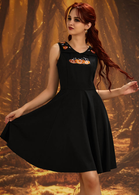 Halloween Græskar Broderi Swingkjole