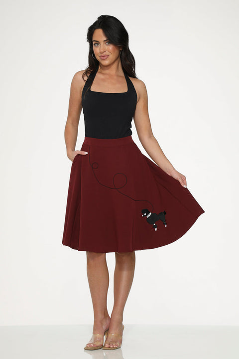 Bordeauxrød Sort Broderet Puddel Swing Nederdel