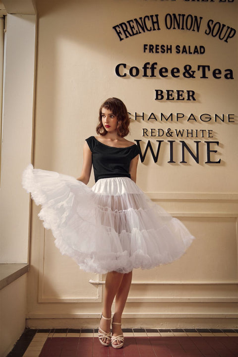Tilføj den perfekte mængde volumen og elegance til dit look med Orchid Blooms hvide underkjole. Dette bløde, luftige lag er designet til at fremhæve fylden i dine yndlingsnederdele og -kjoler, og det giver en yndefuld silhuet, samtidig med at det sikrer komfort og fleksibilitet. Uanset om du styler et vintage-inspireret outfit eller tilføjer lidt finurlighed til din garderobe, er denne underkjole et must-have basisstykke.