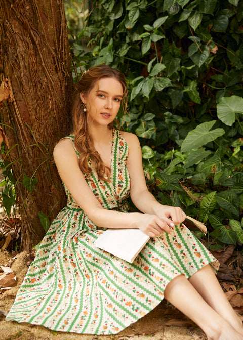 Øjeblikkelig glæde, men gør den brugbar. Instant Energy Faux Wrap Dress fra vores navnebror ModCloth-mærke er en eventyrlig dagdrøm, der bliver levende, fyldt med legesyge kaniner, der hopper mellem jordbær og bladgrønne striber. Silhuetten med imiteret wrap skaber en ubesværet flatterende pasform, mens bindebåndet i taljen strammes lige til bevægelse, der er klar til at snurre rundt. Denne kjole er komplet med lommer og fremstillet i åndbar bomuld med et glat viskosefor, og er perfekt til havefester, picnics eller ethvert øjeblik, der kræver lidt ekstra munterhed. Advarsel: kan inspirere til at hoppe, smile og spontan leg.