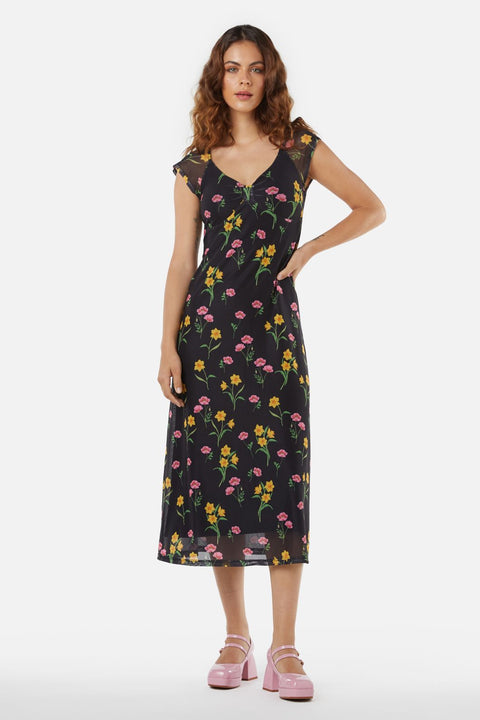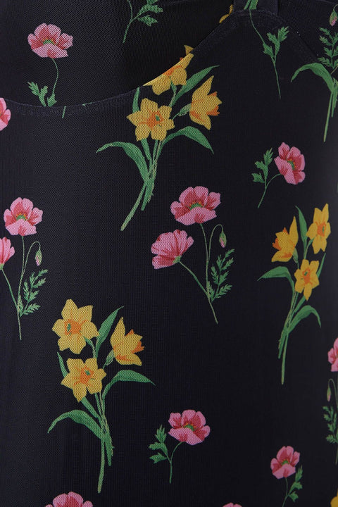 Træd tilbage til 90’erne med et moderigtigt twist i Floral Mesh-kjolen fra Princess Highway, hvor nostalgien blomstrer på ny blandt påskeliljer og nelliker. Denne kjole er en poetisk ode til årtiet med en empire-linjeformet overdel, der yndefuldt definerer taljen, før den falder ned i en semi-fitted nederdel. Korte ærmer med ærmer flagrer ned ad skuldrene og tilføjer et strejf af fantasi og frihed. Den V-formede halsudskæring tilbyder et lærred for både beskedenhed og charme og inviterer til et legende kig på, hvad der gemmer sig nedenunder. Denne kjole er fremstillet af en polyester-elastanblanding og kombinerer komfort med holdbarhed, hvilket sikrer, at dit retro-look holder i længden. I sort er det en alsidig baggrund, der får blomstermønsteret til at poppe. Perfekt til kaffedates, afslappede gåture i byen eller de aftener, hvor du har lyst til at høre live poesi eller musik i et hyggeligt hjørne af byen.