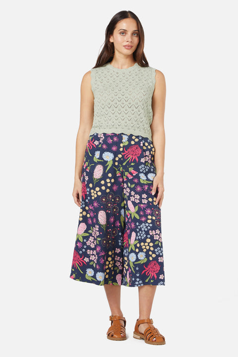 Blød, sød og ubesværet vintage – Lana Pointelle Knit Top fra Princess Highway er en drømmende tilføjelse til din garderobe. Denne salviegrønne og cremefarvede skønhed er fremstillet i en delikat diamantformet pointelle-strik og giver ethvert outfit et strejf af nostalgisk charme. Med en rund halsudskæring, kort længde og ærmeløs stil er den perfekt til at have på lag eller alene på solrige dage. De bølgede kanter langs halsudskæringen, ærmegabene og kanten tilføjer et elegant, feminint touch, der gør denne top lige så fortryllende som en spadseretur gennem en eng med vilde blomster.
