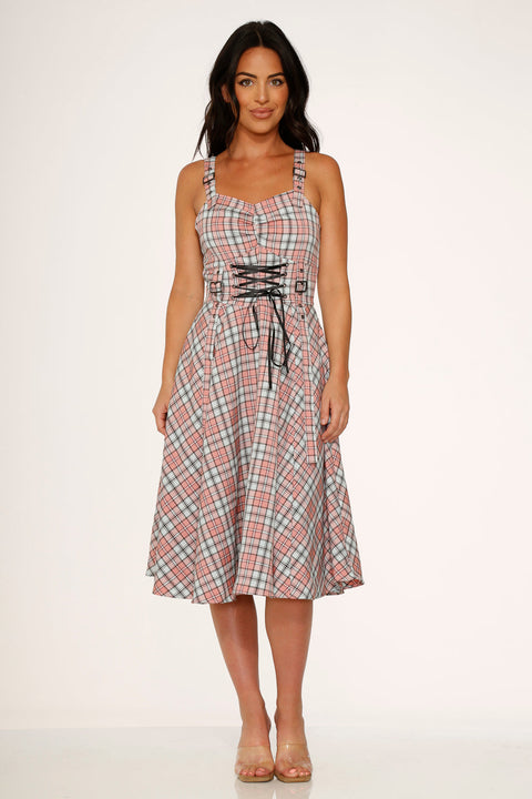 Blød, legesyg og fuld af retro-stil. Den lyserøde ternede swingkjole fra Orchid Bloom er et charmerende must-have til solrige dage og afslappede udflugter. Med sit vintage-inspirerede lyserøde ternede print og klassiske swing-silhuet er den lige dele feminin og sjov.