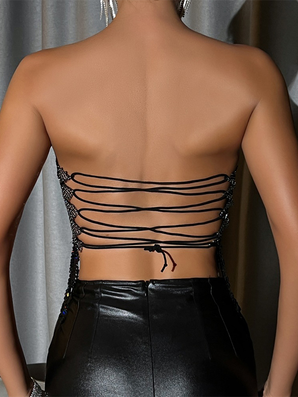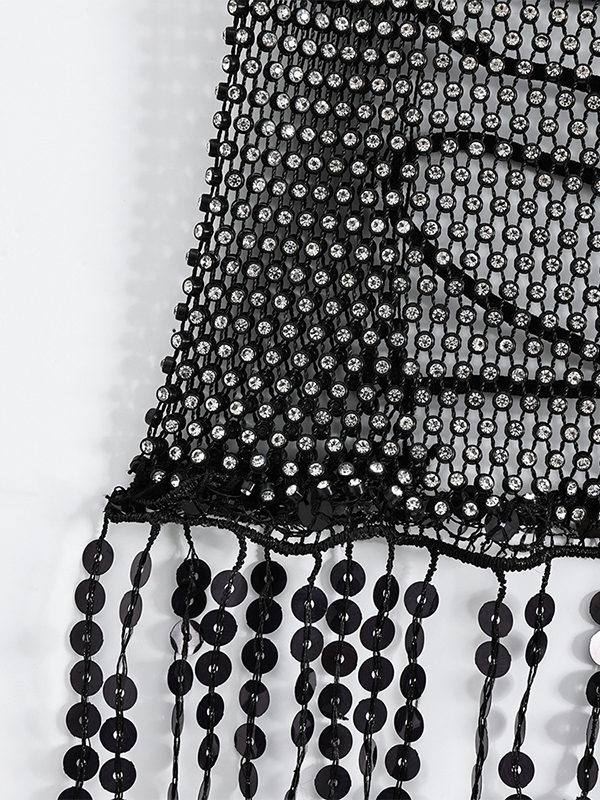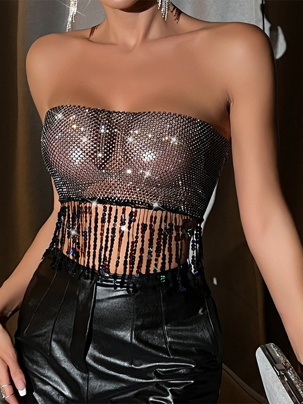 Be the first to review “See Through Rhinestone Tassel Hem Bandeau Top”