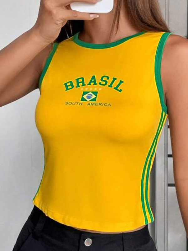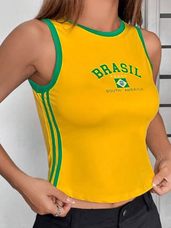 Be the first to review “Crewneck Letter Print Yellow Tank Top”