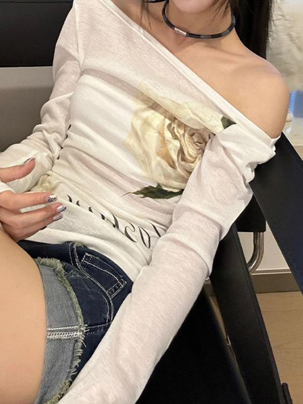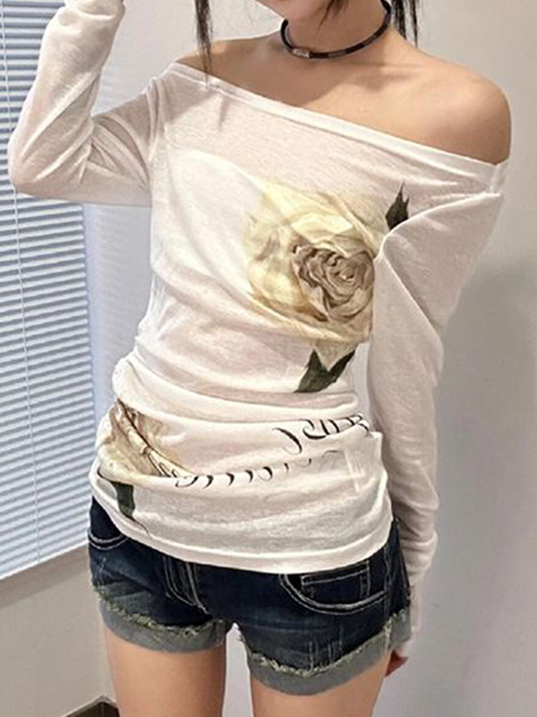 Off Shoulder Floral Print Long Sleeve Tee