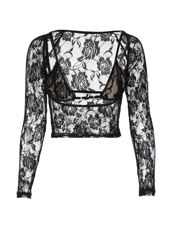 See Through Cutout Lace Cami Long Sleeve Tee