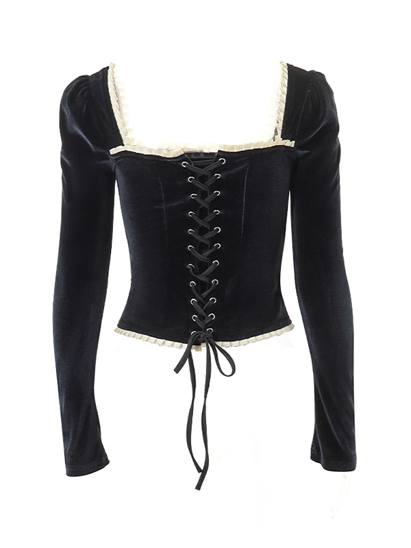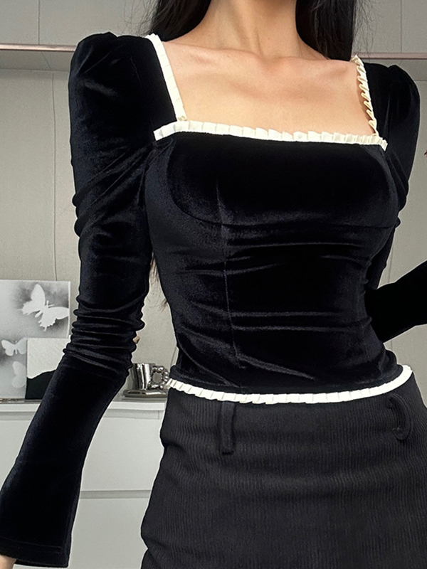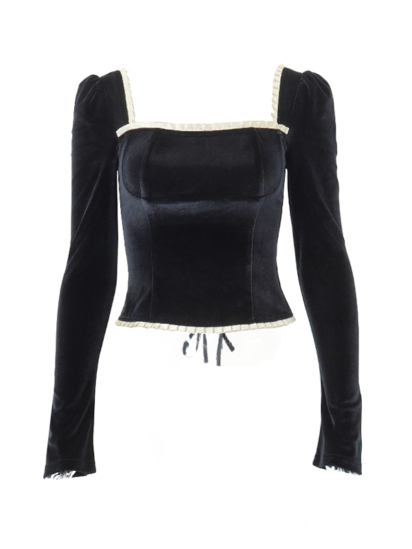 Unique Design: This long sleeve tee features a velvet design and square neck, giving it a vintage and elegant look that sets it apart from other tops.