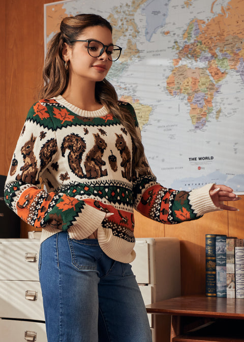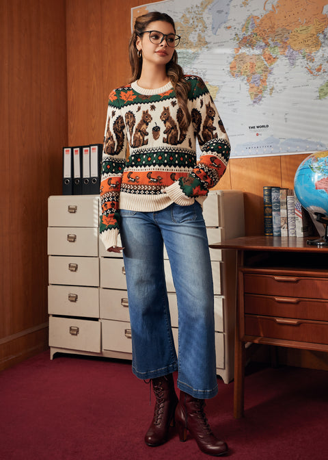 Svøb dig ind i hyggelig charme med Notes of Nostalgia Sweater fra vores navnebror ModCloth-mærke. Denne klassiske pullover med rund hals er strikket i 100% bomuld for komfort og åndbarhed og har Squirrel Away-designet – et retro-skovmotiv med egern, agern og efterårsblade i varme sæsonbestemte toner. Perfekt til lag-på-lag på friske dage og et legende nik til vintage-strik med moderne anvendelighed.