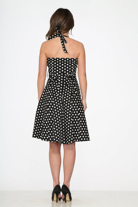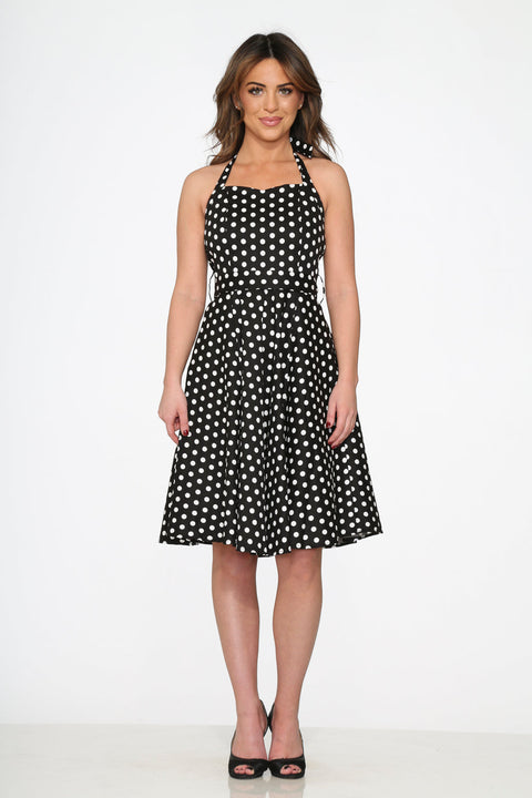 Sort&Hvid Prikket Halter Swing Kjole