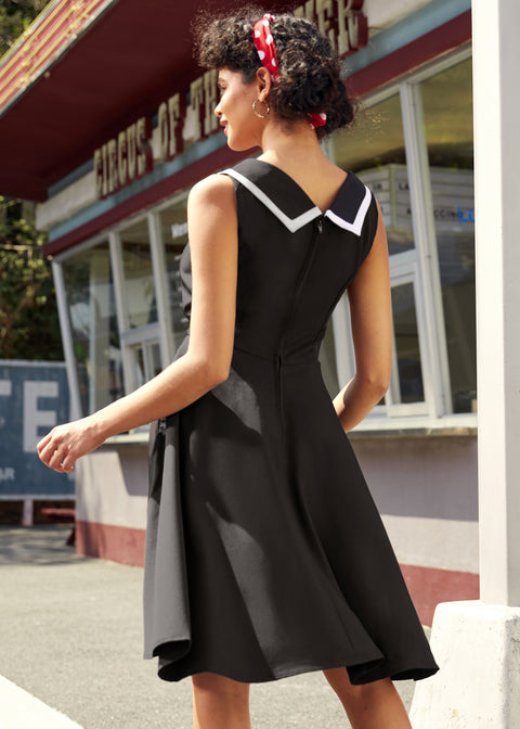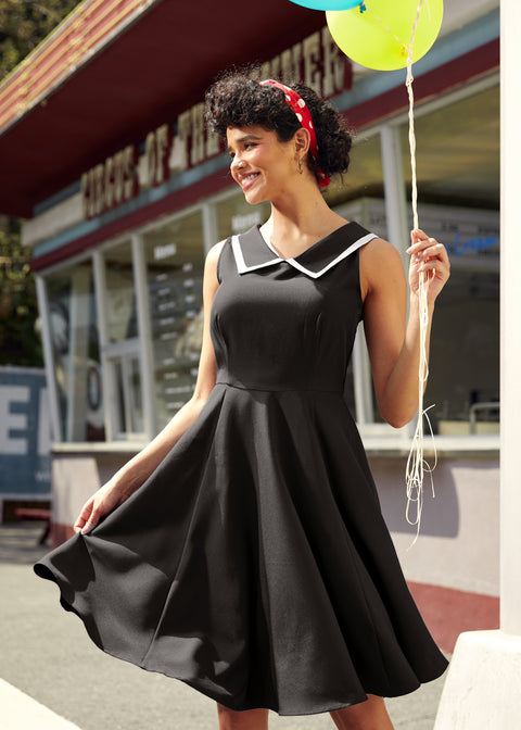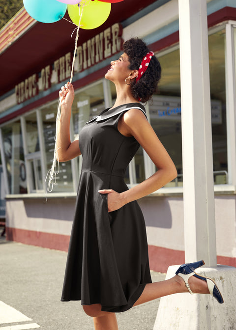 Orchid Blooms sort-hvide swingkjole er en perfekt blanding af vintage charme og moderne sofistikering. Med sin klassiske monokrome palet og flatterende silhuet går denne kjole ubesværet fra hverdags- til aftenbrug. Uanset om du deltager i en soirée eller blot løfter din hverdagsstil, tilbyder dette stykke et raffineret, men legende touch.