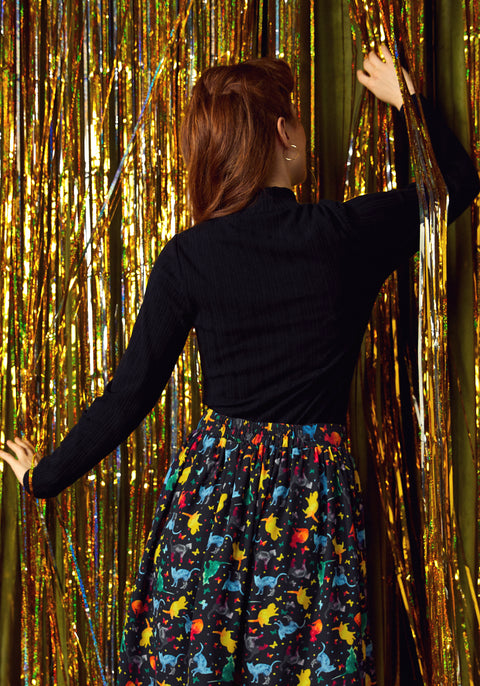 Mød din nye MVP i garderoben – den tidløse turtleneck-top i sort. Ubesværet elegant og uendeligt alsidig. Denne bløde ribbede strik bringer vintage-charme med en moderne kant. Den høje hals og de lange ærmer gør den til det perfekte lag-på-lag-stykke til køligere dage, mens den slanke silhuet er flatterende, uanset om den er gemt i højtaljede bukser eller parret med en statement-nederdel. Fra hyggelige morgener til aftener i stearinlysets skær beviser denne klassiske top, at enkelhed aldrig går af mode.