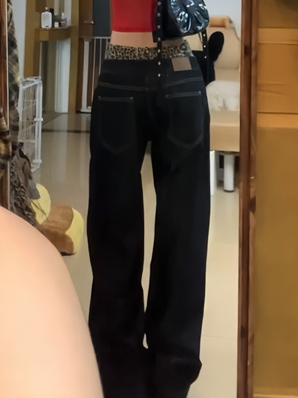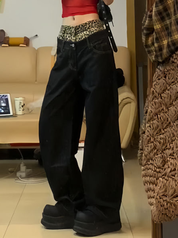 Be the first to review “American Retro Leopard Print Stitching Boyfriend Jeans”