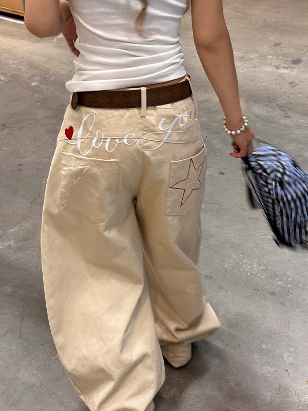 Retro Star Letter Embroidery Boyfriend Jeans