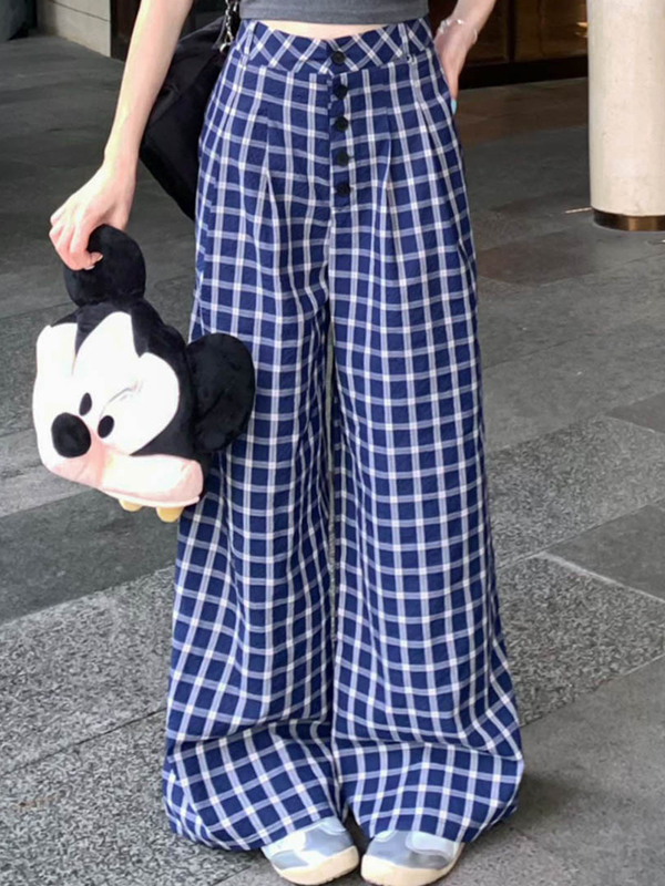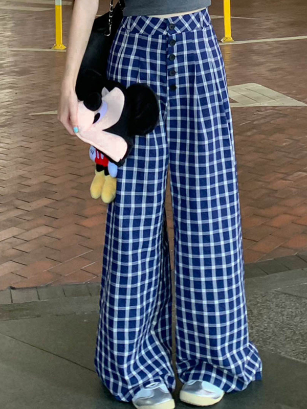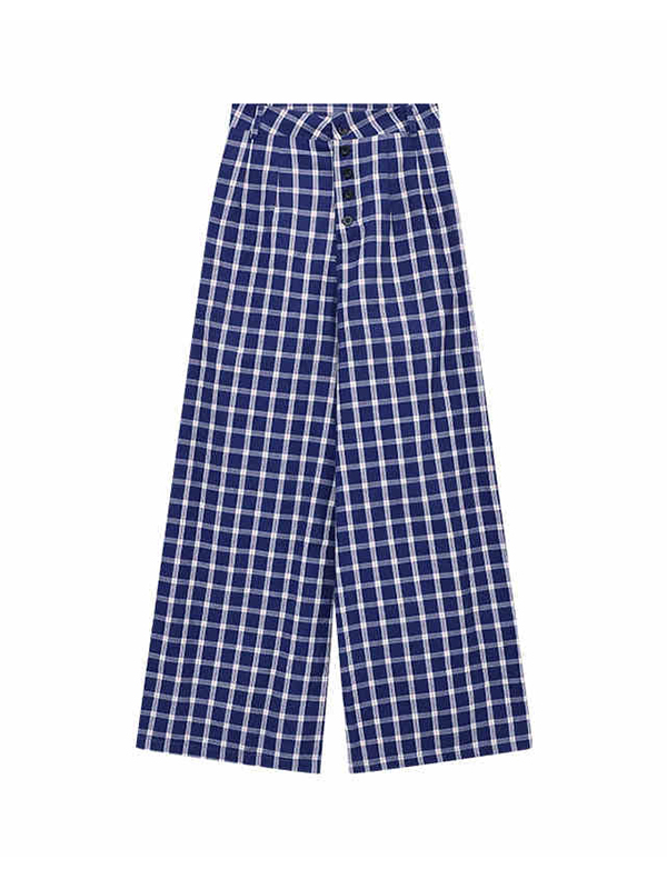 Plaid Print Wide Leg Pants
