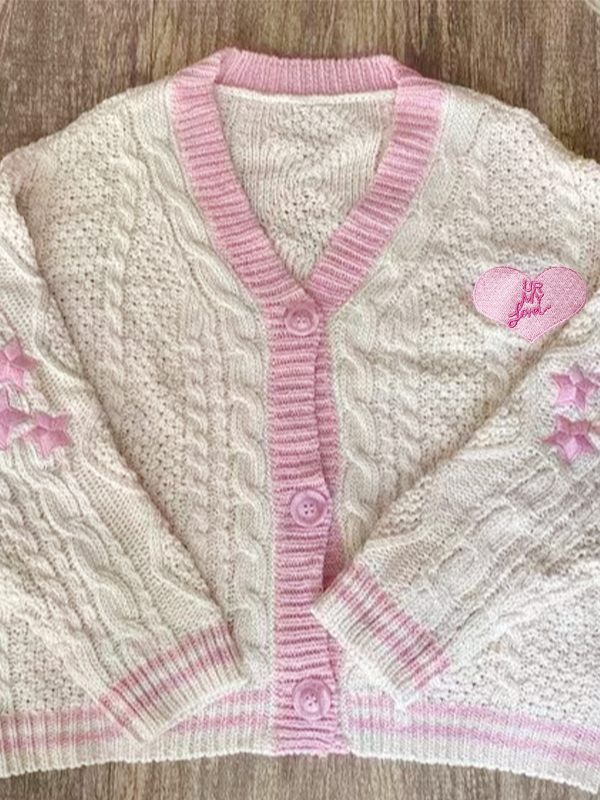 Be the first to review “Contrast Trim Star Embroidery V Neck Cardigan”