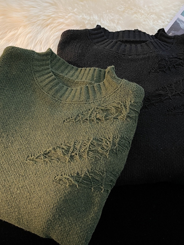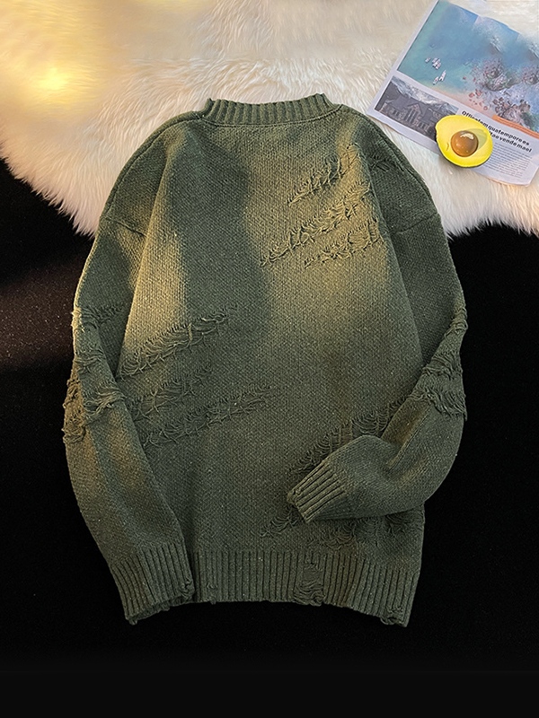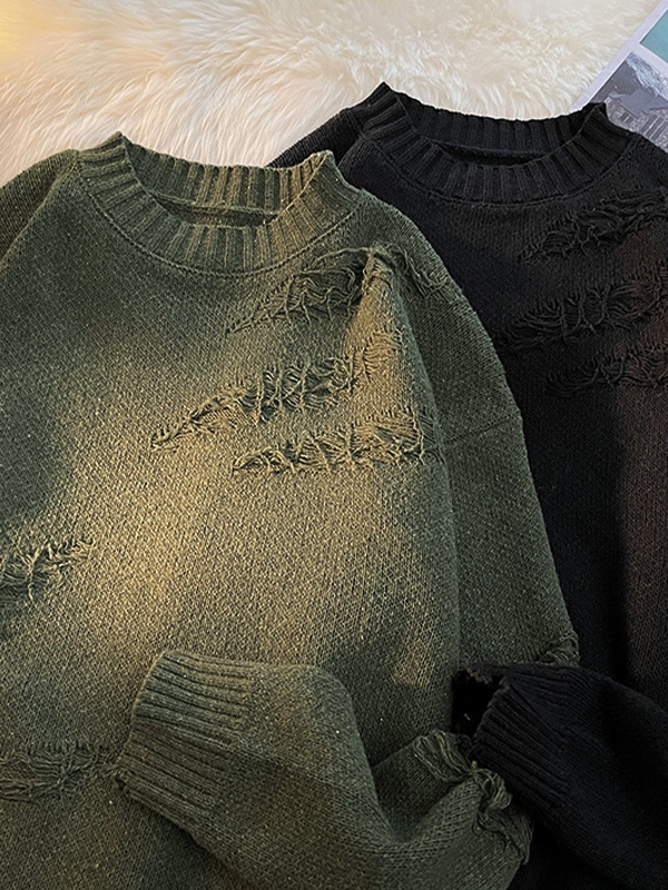 Description: Features distressed fray rips design, ended with rib trims detailing.