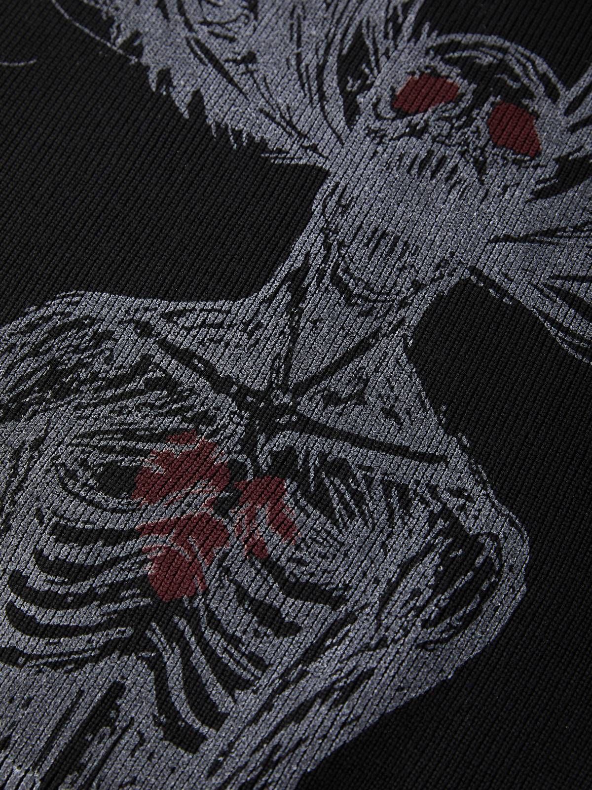 Description: Get these dark grunge-vibe jumpers for chic street outfits or holiday seasons. Cuts to a relax silhouette, features a design of devil jacquard on it, with drop shoulders, and ribbed trims at collar, cuffs and hem detailing.