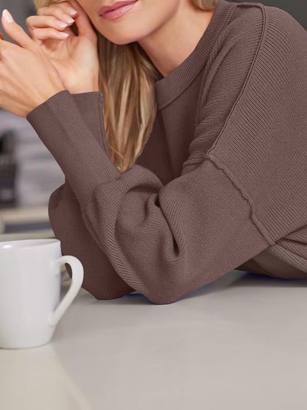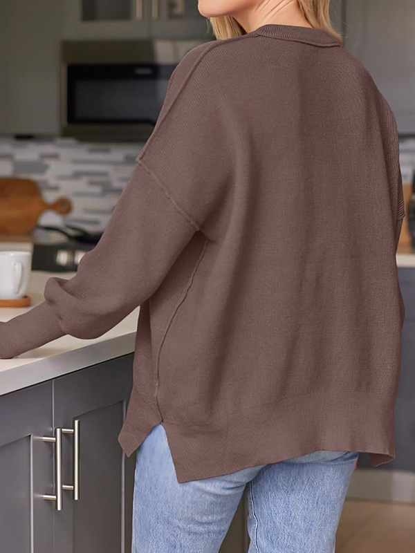 Be the first to review “Solid Crew Neck Cape Sleeve Slit Sweater”