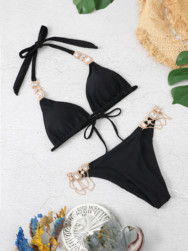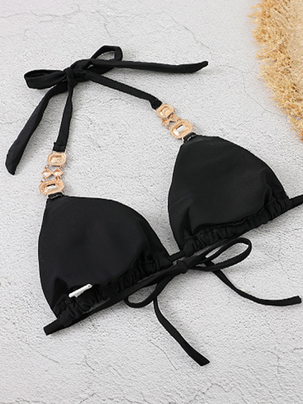 Be the first to review “Solid Gem Engraved Halter Tie Back Bikinis”